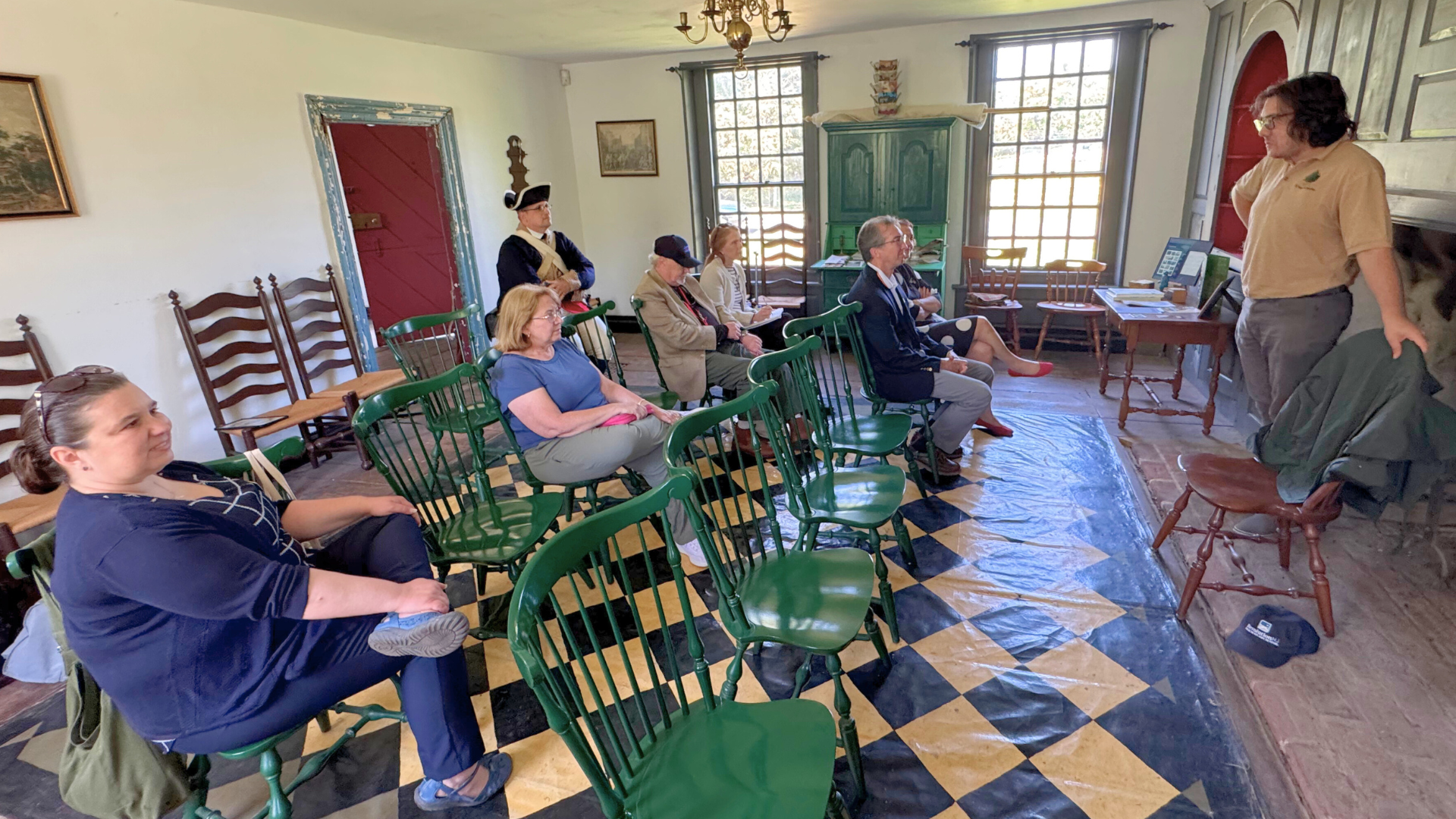 Your cohort is gaining invaluable firsthand experience in living history and learning to authentically represent Somerset County life during the 18th century. During a recent training session at the Abraham Staats House, docent-in-training Mark Bogetto served as a model, demonstrating the various components of gear that a Revolutionary War soldier would have worn, bringing tangible reality to life. Docent-in-training Nicole Aulicino of the Van Horne House has shared her growing expertise in women's 18th century dress in informative video, offering insights she has learned from the Heritage Trail Association about the intricate details and cultural significance of period attire for women of that era. These hands-on learning experiences allow your cohort to move beyond the foundational knowledge you have learned during collaborative training, developing an intimate understanding of daily life in colonial Somerset County that help to create engaging encounters with visitors.